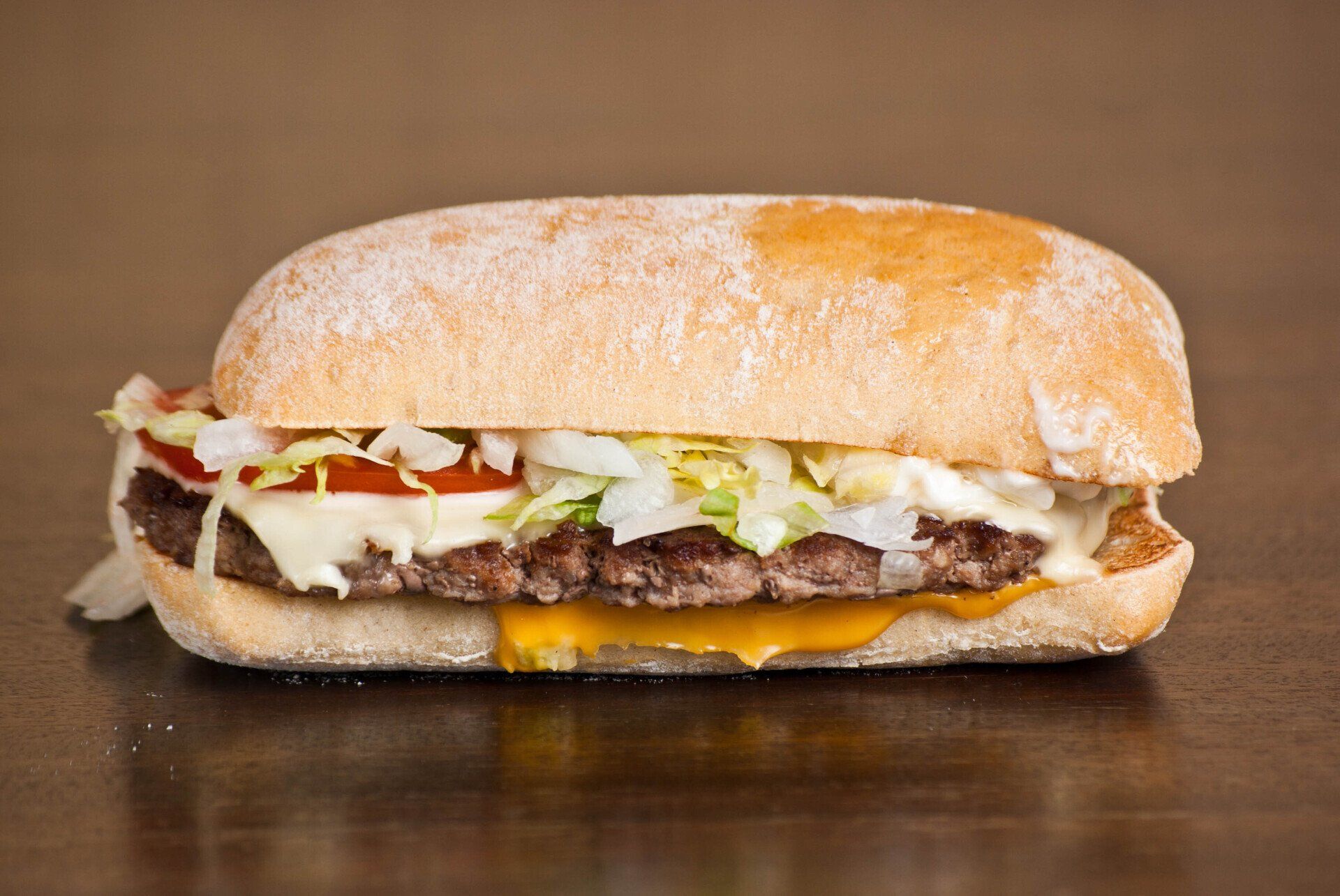 Cheeseburger hoagie on 12" sub roll with fries and coleslaw here at Bill's Corner Deli.